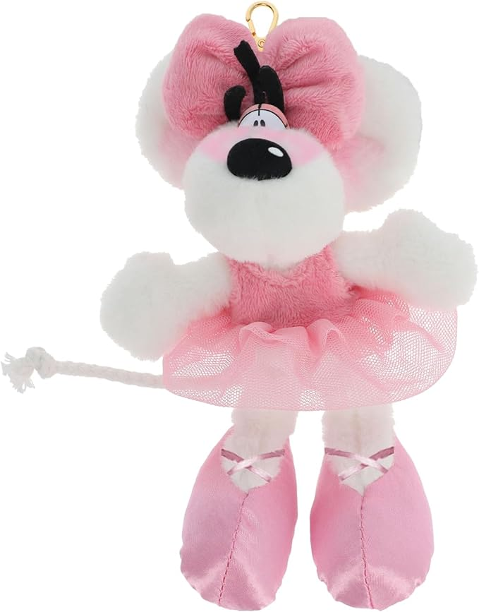 Porte-clés Peluche Diddlina en Robe Ballerina 15cm - Accessoire Années 90-100% Recyclé Écoresponsable - Idée Cadeau Enfant & Fan Nostalgique de Danse Classique - Peluche Tutu Rose