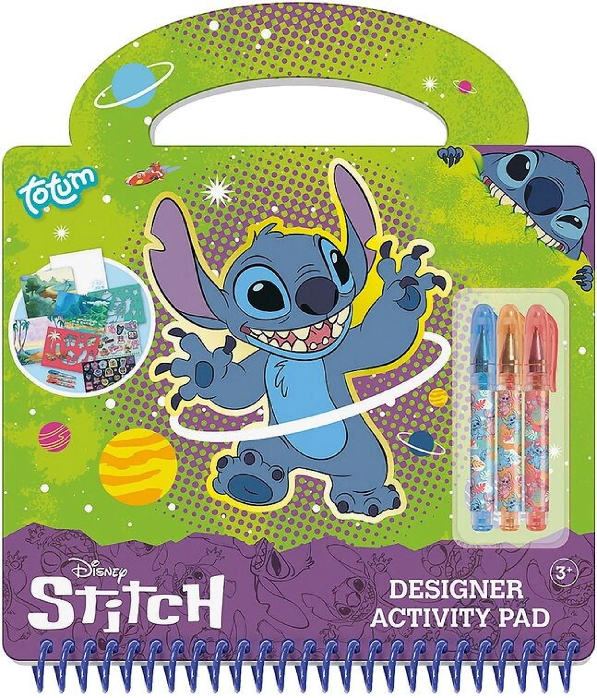 Cahier de croquis inspiré par le personnage emblématique de Stitch, accompagné d'une sélection de trois instruments d'écriture. Idéal pour les artistes en herbe et les passionnés de dessin qui souhaitent capturer leurs créations avec style et praticité.